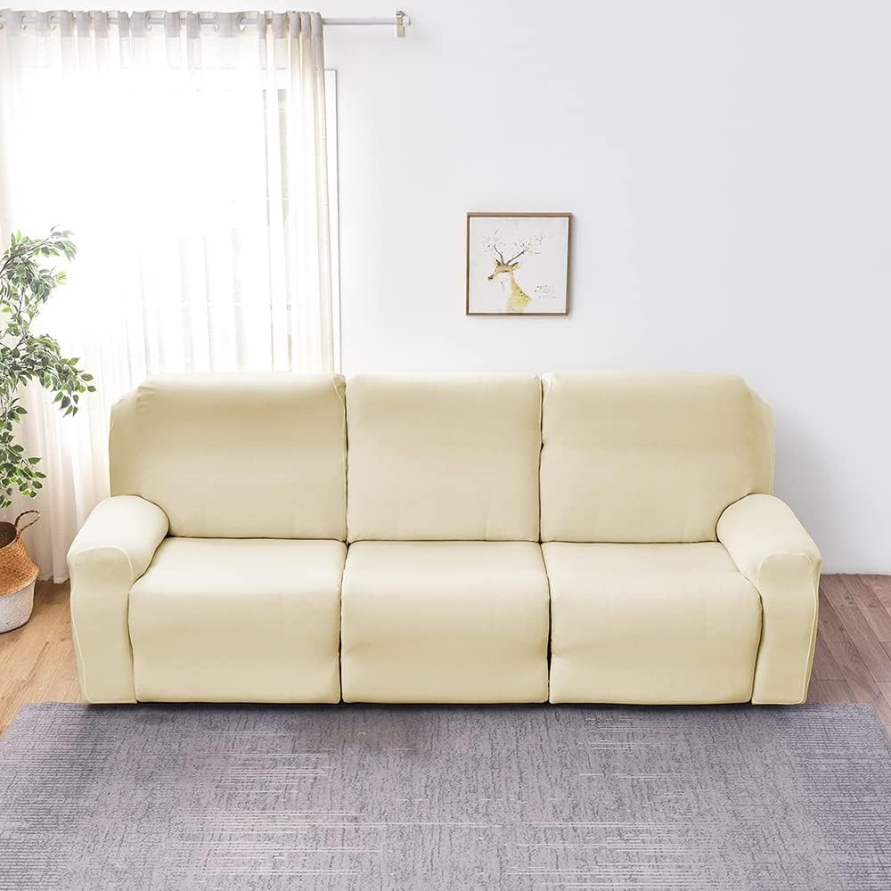 ⭐These beautiful recliner sofa covers will extend the life of your sofa, protect your recliner, refresh your old furniture and save you money. Quickly and easily update the look of your existing furniture.⭐Product description:1.Super soft: our stretchy recliner sofa cover is made of polyester + spandex fabric, comfortable recliner sofa cover for all styles of armchairs and sofas.2.Perfect protection: protect your sofa from daily wear and tear, stains on furniture, children's pets, dog scratches or accidental spills3. Anti-slip design: reclining sofa liner with extra wide reclining liner with elastic band wrapped around the base of the reclining chair to prevent it from sliding.4. Storage pocket: the reclining cover has a side pocket for remote controls and magazines5.Easy care: machine washable, under 30 degrees or cold water, do not bleach or iron.⭐ Set includes: Ordered Kits recliner cover * 1 /2/3 seater (4/6/8 pieces)⭐Reminder:1. There is a 1-4cm difference based on manual measurement. Please forgive me!2. Please check the size chart carefully before purchasing the product.3. Please note that there may be slight colour difference due to light and screen, subject to the actual product.⭐⭐⭐⭐⭐ Satisfaction Guarantee: We are committed to providing high quality products and friendly customer service to every customer. If you have any questions about our products, please feel free to contact us and we will be at your service 24 hours a day.