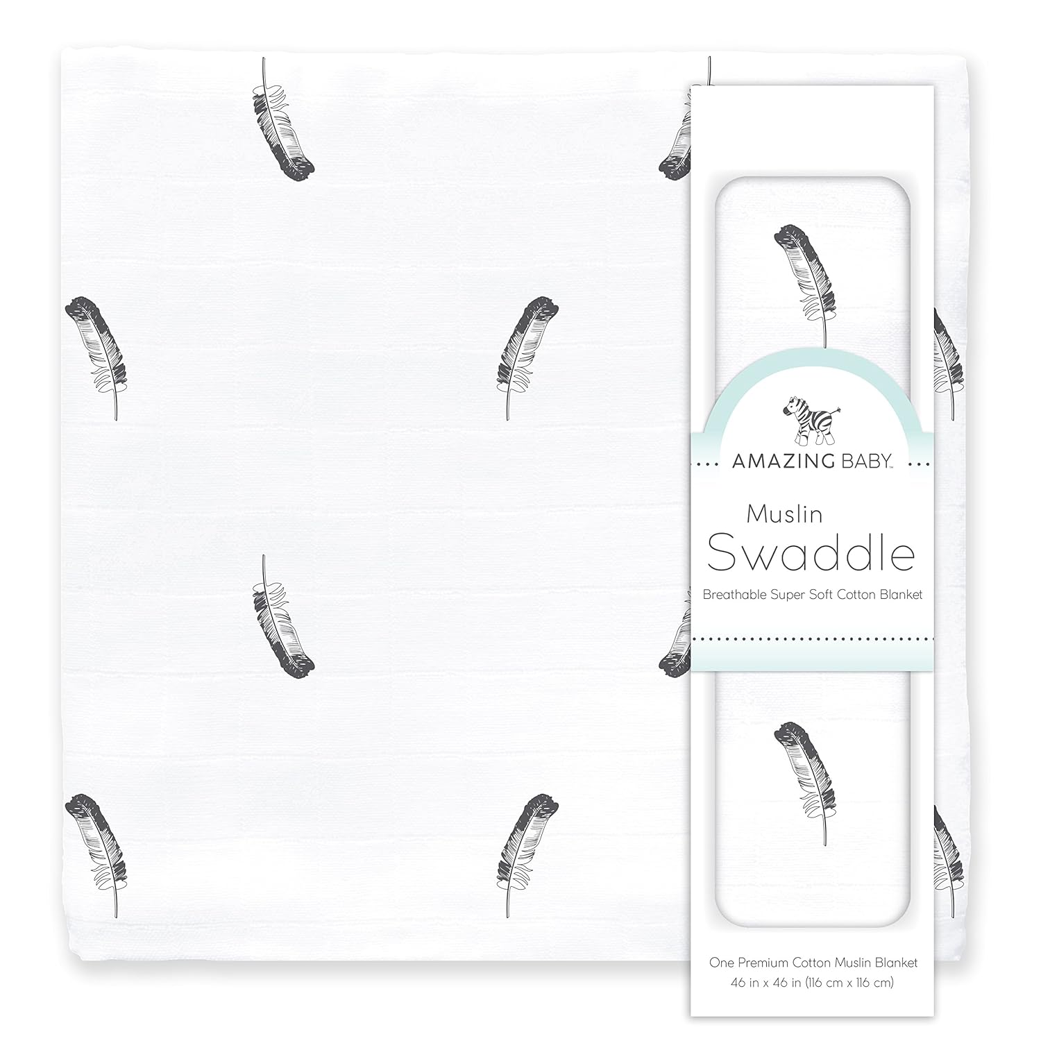 Amazing Baby premium quality muslin swaddles get softer with every wash. Rest easy when your baby is lovingly swaddled in premium 100% cotton muslin. The open weave increases breathability and reduces the risk of overheating. The generous size and square shape makes swaddling easy as 123. Beyond swaddling, use as a nursing cover, sunshield on stroller, playmat for tummy time, and more. 46 x 46 inches (116 x 116 cm). Machine washable.