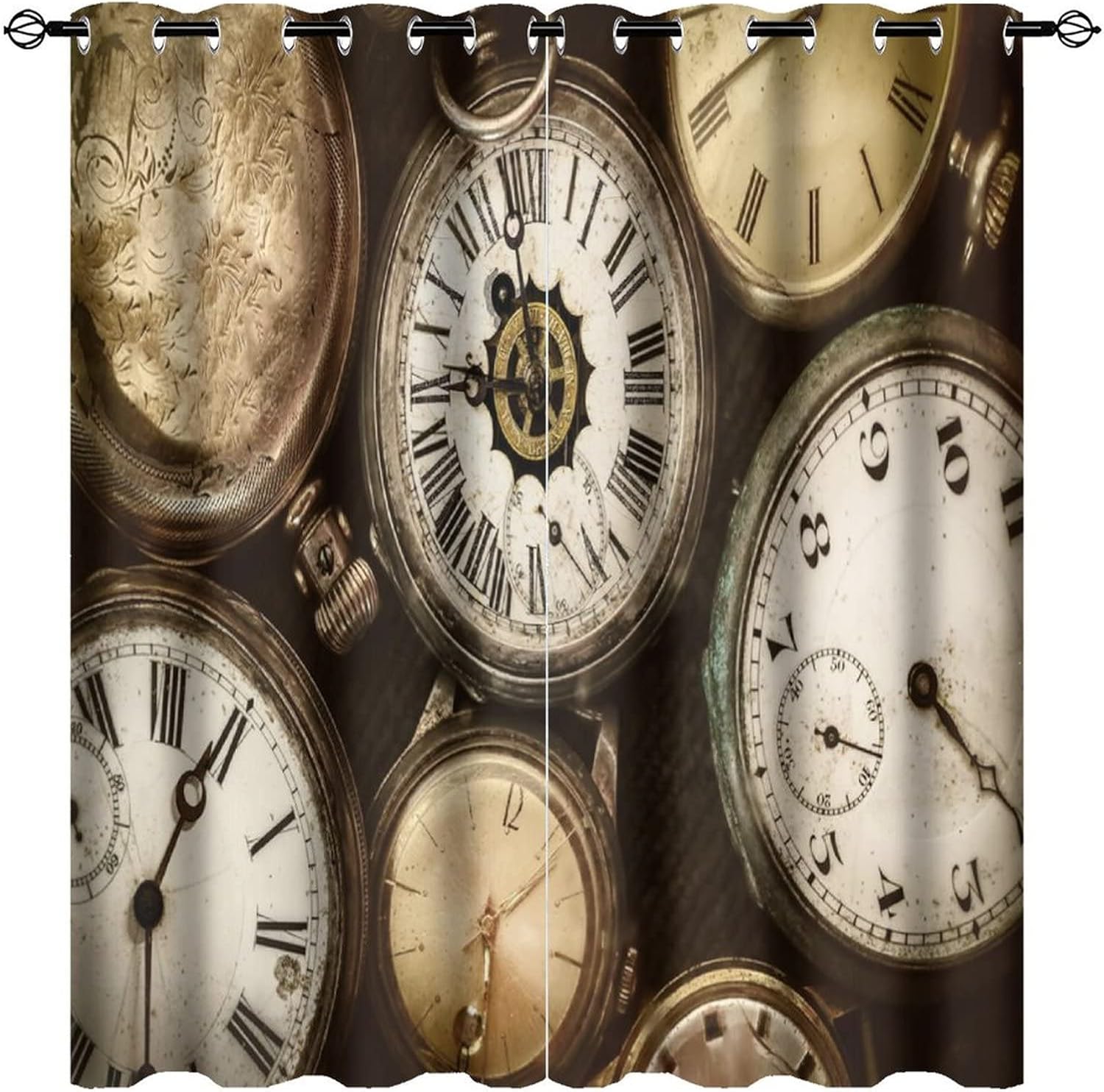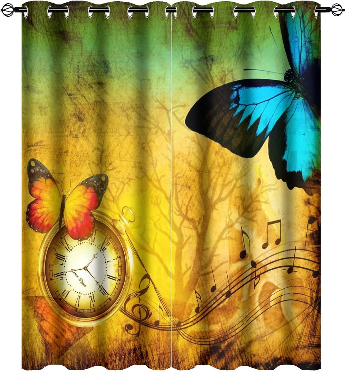INSFBRB Vintage Steam Clock Patterned Blackout CurtainsThis Vintage Steam Clock Curtains liven up your indoor or outdoor spaces with a sense of airiness and beauty.Workmanship & Design:Each curtain is machine-made and neatly sewn with no loose threads. Soft, high-quality fabrics ensure long-lasting durability.Beautiful patterns, clever colour matching and advanced printing and dyeing processes for vibrant, fade-free colours.This Abstract Rustic Steampunk Style Clock and Butterfly Floral Curtains is suitable for: living rooms, bedrooms, boys' rooms, girls' rooms, nurseries, dining rooms, offices, dormitories, window sills, etc.Care instructions.Machine wash in cold water or hand wash, do not bleach, iron at low temperature.Customer service.24 Hours customer support.